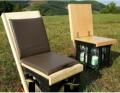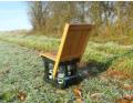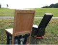 Ein Klemmgurt dient zur Lehnenverstellung, sowie als Schultertragegurt im zusammengeklappten Zustand.